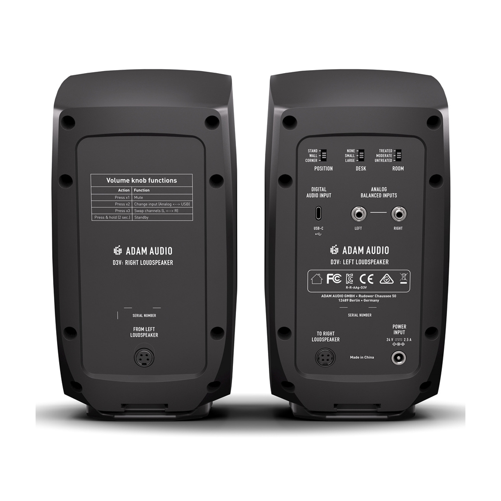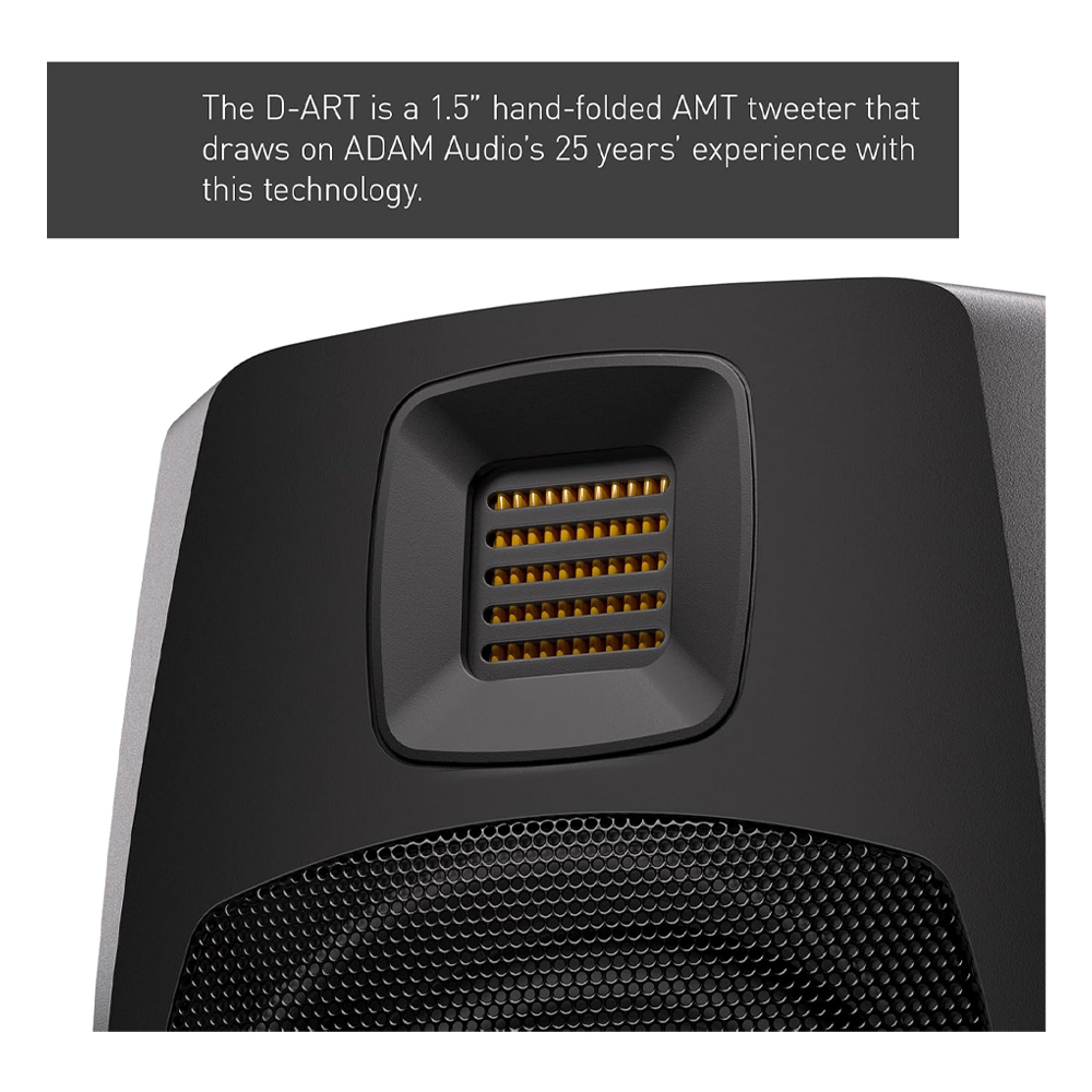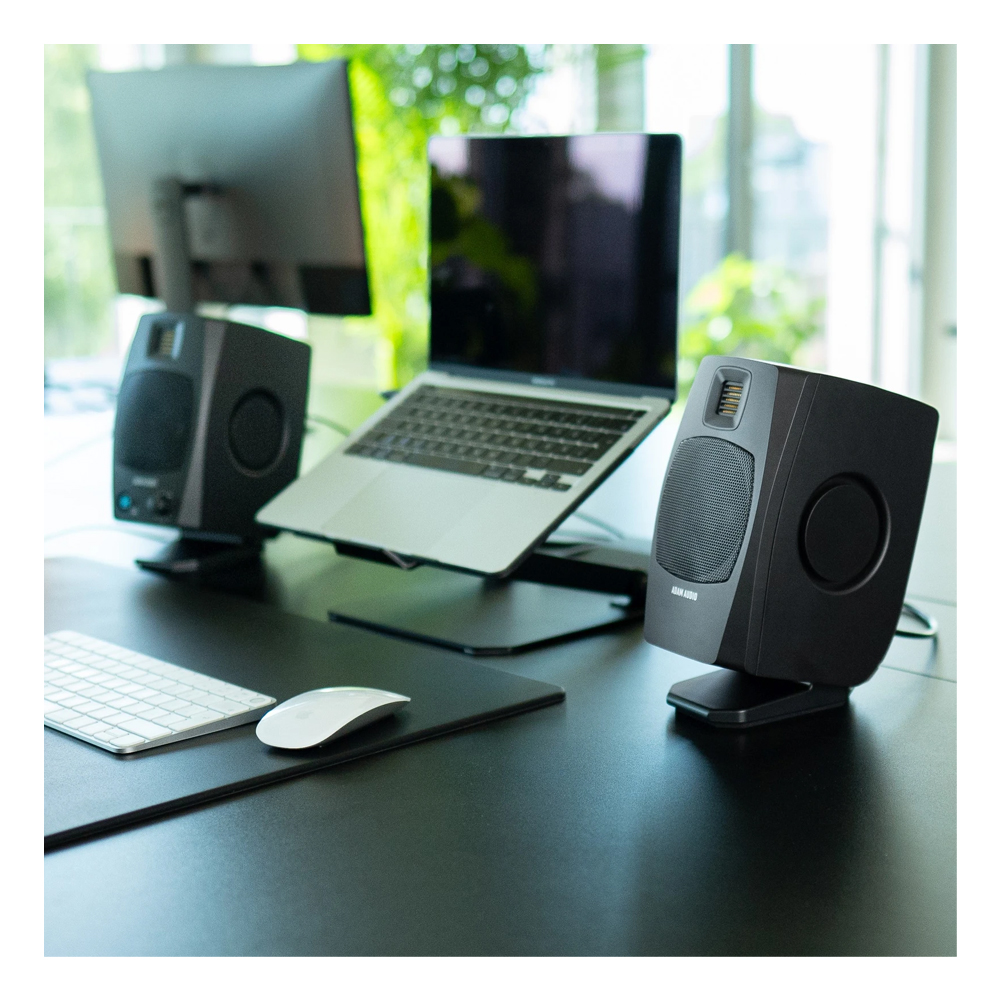 El monitor activo ADAM Audio D3V (par) es una solución de referencia para espacios de trabajo compactos o de escritorio. Con woofer de 3,5″ de aluminio, tweeter de cinta D-ART de 1,5″, radiadores pasivos laterales dobles y conectividad directa USB-C, entrega un sonido sorprendentemente profundo (hasta ~45 Hz) para su tamaño. Ideal para creadores de contenido, home studio, edición de vídeo o mezcla cercana, combina precisión profesional con una integración mínima en el escritorio.