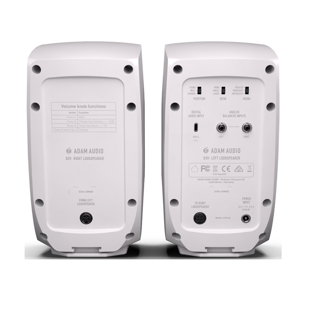 El monitor activo ADAM Audio D3V (par) es una solución de referencia para espacios de trabajo compactos o de escritorio. Con woofer de 3,5″ de aluminio, tweeter de cinta D-ART de 1,5″, radiadores pasivos laterales dobles y conectividad directa USB-C, entrega un sonido sorprendentemente profundo (hasta ~45 Hz) para su tamaño. Ideal para creadores de contenido, home studio, edición de vídeo o mezcla cercana, combina precisión profesional con una integración mínima en el escritorio.