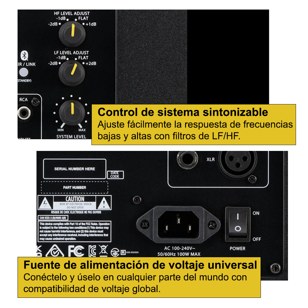 - Sistema Biamplificado: 45W LF Clase D, 15W HF Clase A/B