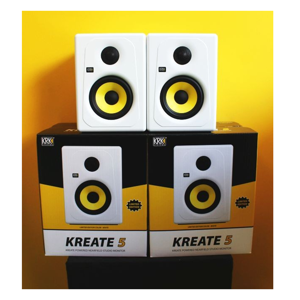 El KRK Systems Kreate 5 White es un monitor de estudio activo de campo cercano de 5 pulgadas que combina el sonido característico de la marca con un diseño elegante en color blanco, pensado para estudios modernos y setups minimalistas.