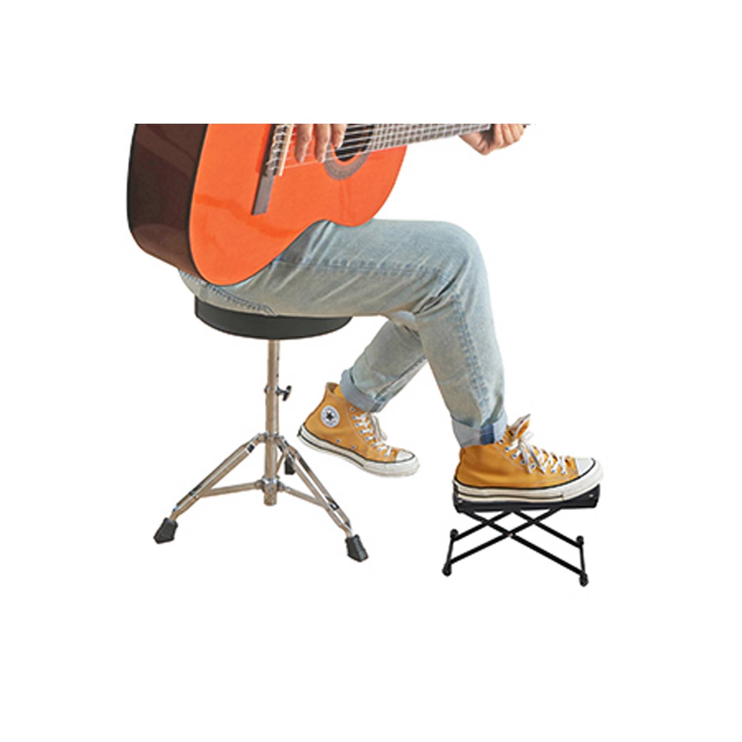 Accesorio indispensable para largas horas de practica que te brinda comodidad y estabilidad a la hora de tocar tu instrumento., fabricado en material resistente, de altura regulable. Superficie antideslizante y plegable y de fácil de transportar, que cabe fácilmente en tu estuche de guitarra.