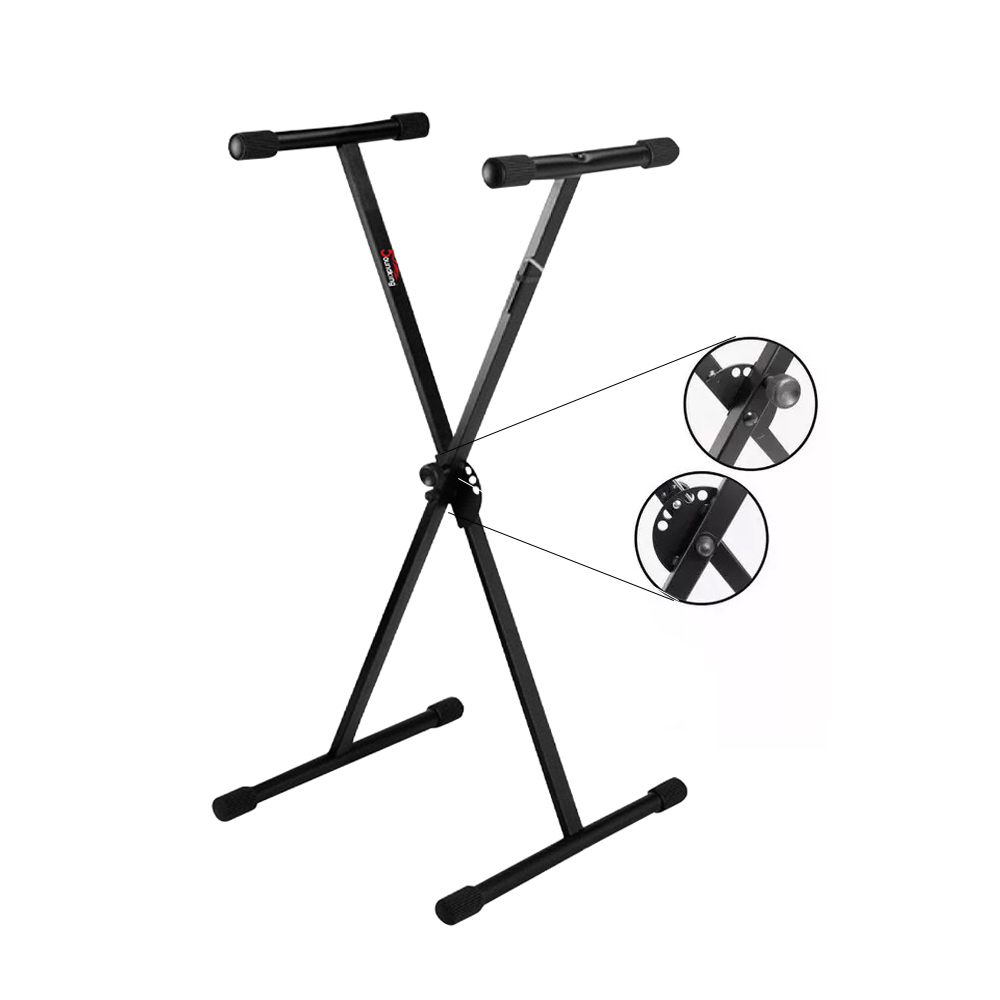 Asegura tu teclado con este resistente y practico soporte de altura regulable. Diseño compacto, se desarma para un fácil transporte. Fabricado en acero para una mayor resistencia.