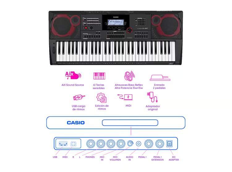 - Parlantes Bass Reflex de Alto rendimiento 15w + 15w
